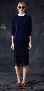 E taí uma maneira de brincar com masculino-feminino cool way: pegando uma saia midi rendada e usando-a com camisa e suéter com sapato-mocassim com salto. E ter a saia e o suéter em tons próximos ajuda a deixar o look longelíneo. Fica um mix na medida de elegante e descolado.