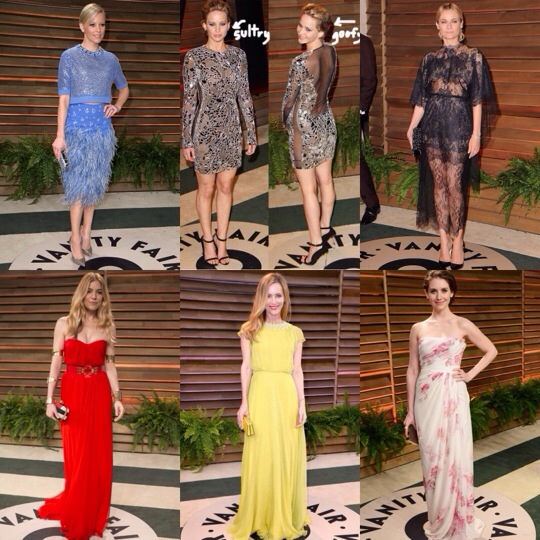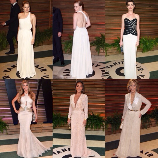 Os looks abaixo foram clicados na festa da Vanity Fair, que é uma das festas que acontecem na noite da cerimônia onde celebridades que não receberam convite pra ir ao Oscar são convidadas pra assistir à cerimônia juntas por lá. E após a cerimônia, quem foi ao Oscar dá uma passadinha pelas festas que acontecem como a da Vanity Fair (a mais badalada de todas), do Elton John ou dos estúdios. E como o dress code é menos formal, a gente vê vestidos curtos e menos formalzões. Se bem que tem muita celebridade que mantém a vibe Oscar. E sim, pra ir a estas festas muitas celebs trocam os seus vestidos por algo mais confortável. Outras mantém a escolha, mas hoje em dia isso é raro. Quer dizer, a stylist tem que ter dois looks pra estrela usar na noite do Oscar. Oh, my!