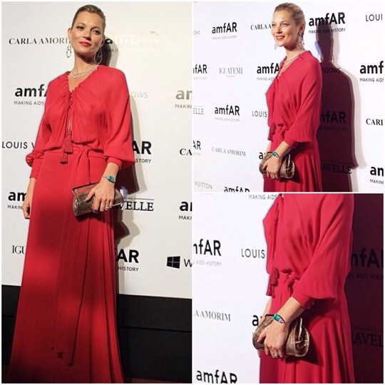 E os dois looks que eu mais gostei do gala da amfAR que rolou na sexta-feira passada em São Paulo foi o rosa Saint Laurent da Kate Moss e o branco Blueberry da mulher do Rodrigo Faro, a Vera Viel. Ambas estavam lindas e bem acessoradas com joias super. Sem exageros mas sem economizar na lindeza.