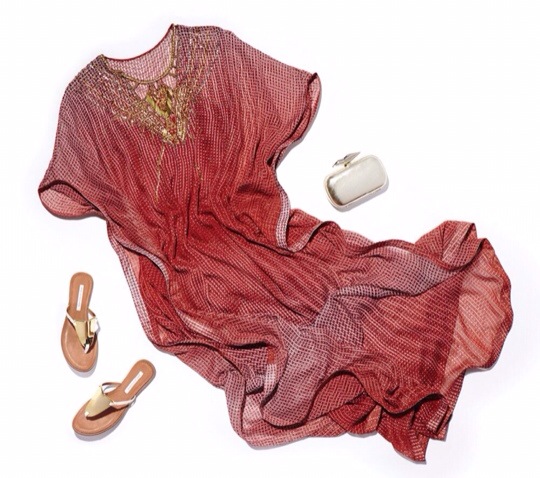 Vi este look de caftan com sandálias rasteiras e carteirinha no feed da DVF e amei. Porque além de eu adorar um caftan e a DVF, achei linda a produção. Fiquei muito querendo um caftan destes com este detalhe na gola e numa cor/estampa assim. E acessorizar com elementos dourados anda super do momento. Fica a dica.
