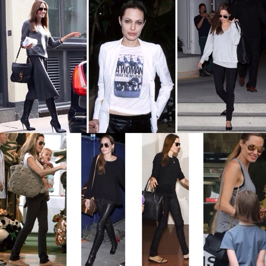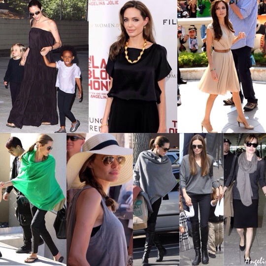 A aniversariante do dia, a bela atriz, diretora, roteirista, cineasta, humanitária e mãe de uma penca respeitável de filhos, a Angelina Jolie, também conhecida como Mrs Smith Pitt, que tem 39 anos e é dona de um estilo clássico discreto que flerta com o sensual, favoritando sempre looks clean todos trabalhados no neutro (raramente ela aposta numa cor que não seja neutra), sempre primando por peças com um bom corte e caimento perfeito e costuma arrematar seus looks com poucos acessórios. Se tem uma coisa que ela gosta de apostar pra dar uma apimentada de leve no seu estilo clássico/clean é nuns toques sensuais como fendas, peças mais ajustadas (saias, calças e vestidos), salto alto e decotes. Mas sempre calibrados no modo elegante, ou seja, sem exageros. A maquiagem costuma seguir a linha igualmente discreta, mas vez ou outra ela adiciona algum elemento que foge à esta regra como um batom vermelhão ou um olho mais caprichado. Na verdade a Angelina é naturalmente linda e ao que parece ela curte se valer disso sempre que pode.