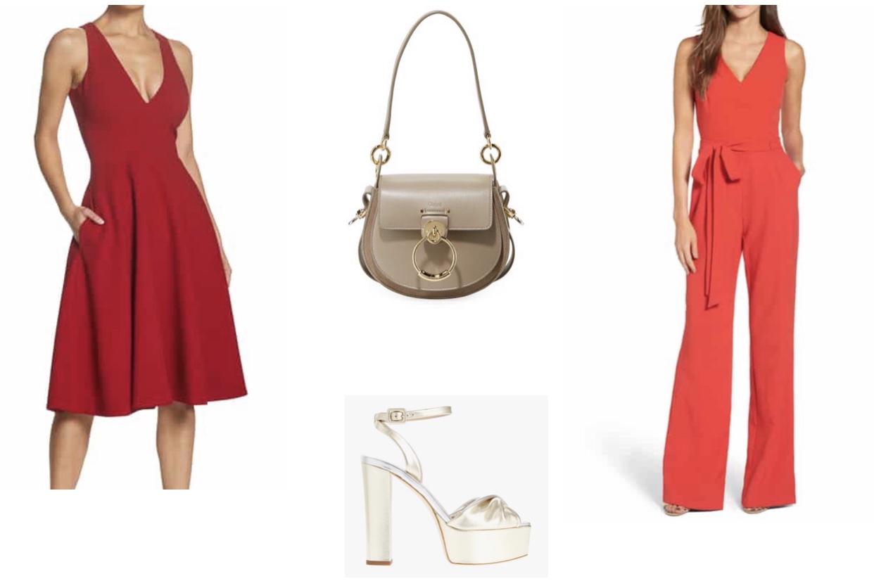 E pra terminar um vestido cocktail e um macacão mais arrumadinho com a tal bolsa pequena mais arrumadinha mas não muito e neutra e uma plataforma mais voltada pra noite, dourada e prateada. Só porque você quer…