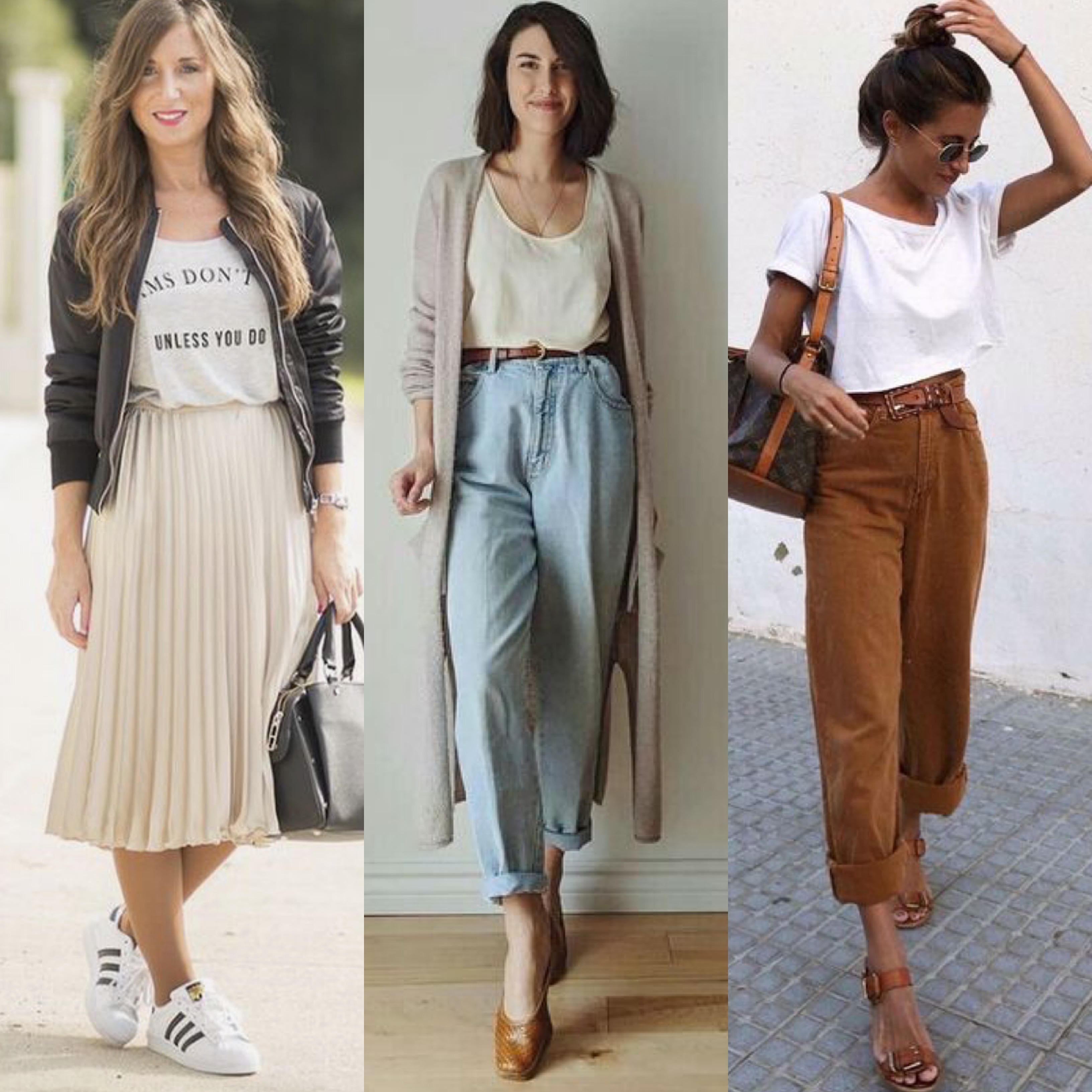 No primeiro exemplo eis o limite certo de usar roupas ajustadas ao corpo sem cair na roupa apertada demais. As outras são ótimos exemplos de roupas certinhas no quesito tamanho.