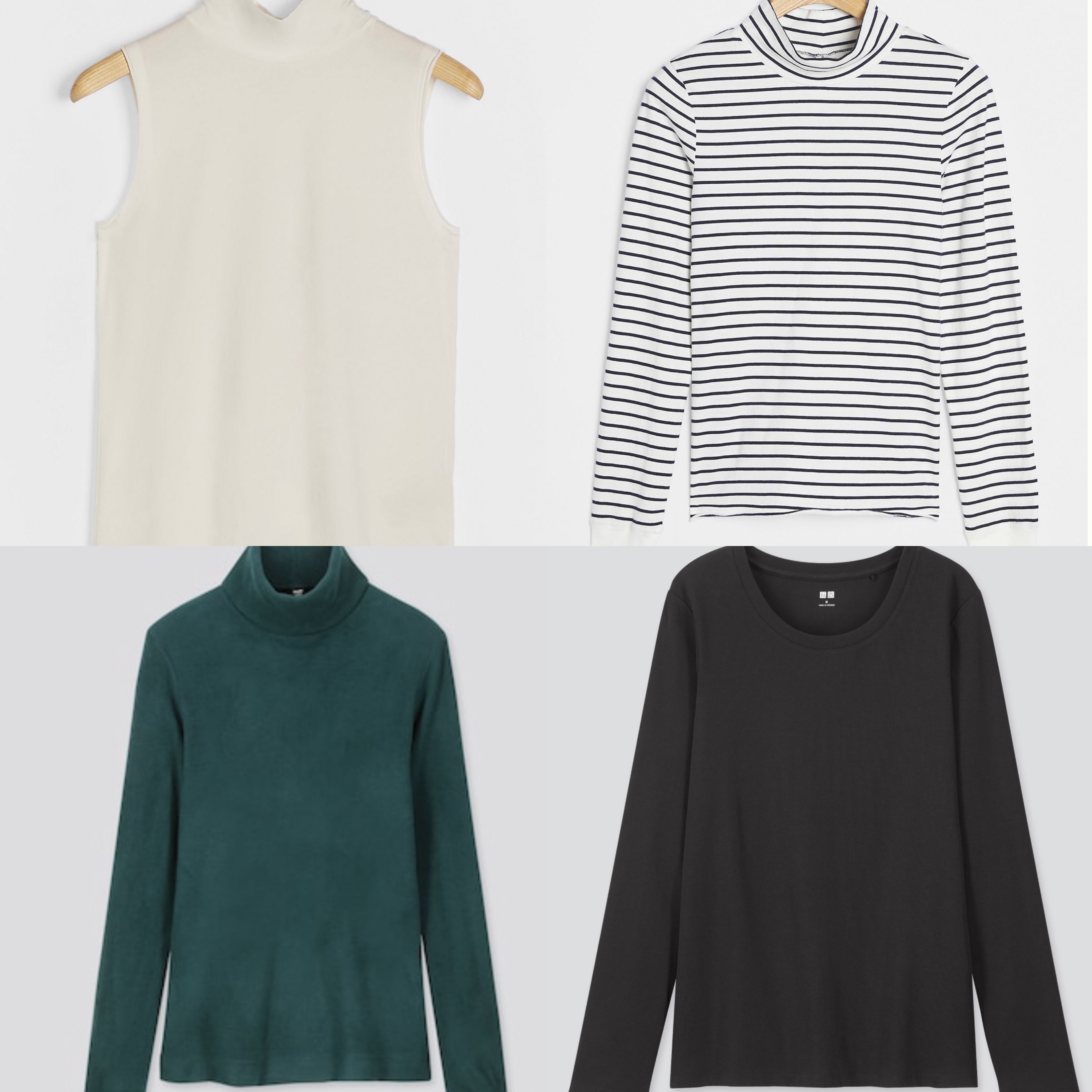 Dá pra considerar usar por baixo uma camiseta de manga comprida, um suéter justinho de gola rulê ou gola alta do tipo mock (mais sequinha e coladinha no pescoço) sem manga ou manga comprida.