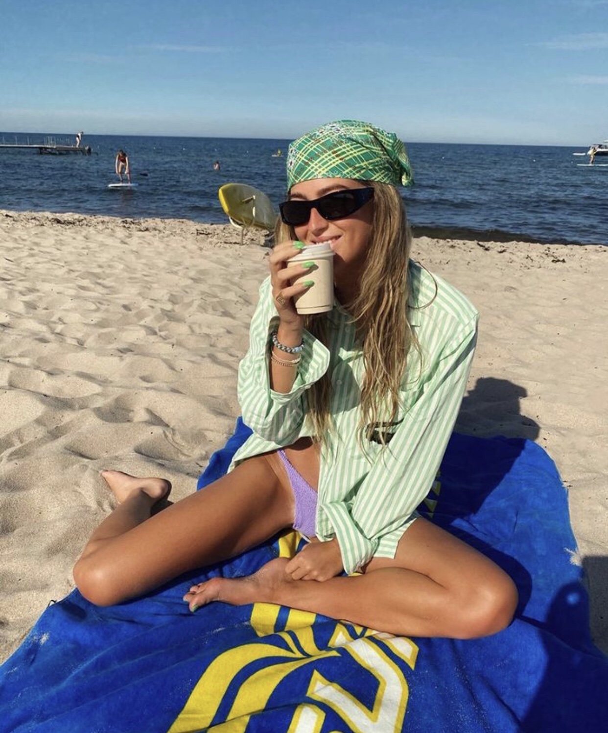 E sim, a praia/piscina é um ótimo lugar pra experimentar combinações de cores que não estamos muito acostumados com. Ou combos que queremos dar uma experimentada pra ver se bancamos, se tem a ver com nosso estilo. Seja lilás com verde ou qualquer outro.
