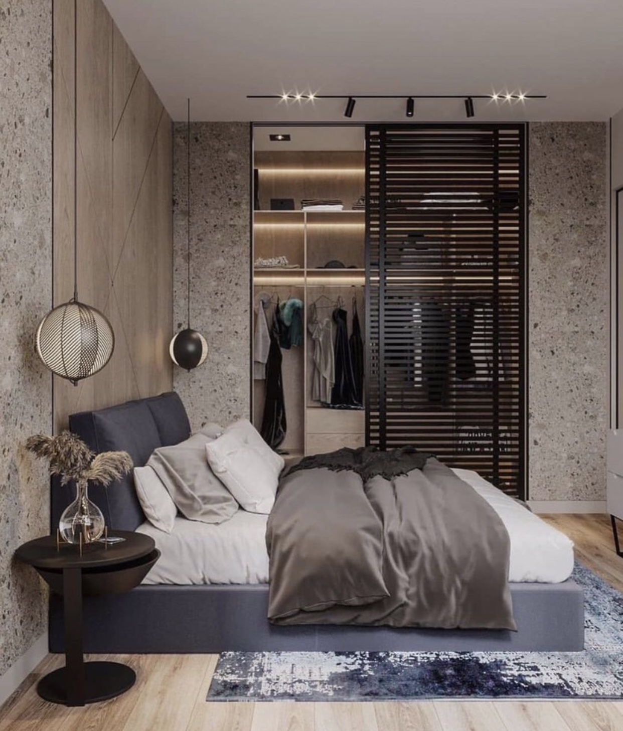 E no caso falo do closet/armário per se e não no conteúdo dele como roupas e acessórios. Porque né, achei uma ideia genial de closet essa de pegar uma lasquinha do quarto e fazer de closet/armário embutido com uma porta nada convencional na base do uma olhada ligeiramente velada, decorando e bem o quarto.