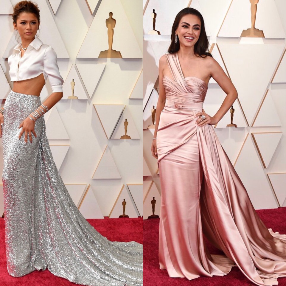 E pra fechar vestidos ou saias com cauda são também uma tendência. Nada práticas na vida real, mas que definitivamente causam aquele impacto visual. A Zendaya foi de Valentino e a Mila Kunis de Zuhair Murad Coutute.