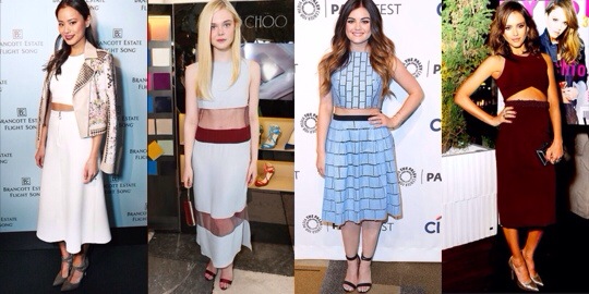 Já faz tempo que usar um outfit com o top cropped (mais curto) anda em voga. Mas eita tendência difícil de usar e encantar. Mas mesmo assim parece que algumas celebs curtem o look, sobretudo as mais novinhas.