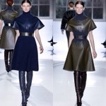 E os looks do designer Alexander Wang pra Balenciaga são estes dois vestidos midi de couro com botas acima do joelho deslumbrantes. Fiquei seriamente querendo.