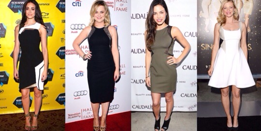 Um dos vestidos que têm sido aposta de algumas celebs é este com detalhes numa cor ou num tom diferente do resto do vestido, seja o vestido no modelo que for. Dá uma graça extra ao vestidinho party-like. Fica a dica como opção de vestido pra curtir uma festinha casual ou um jantarzinho.